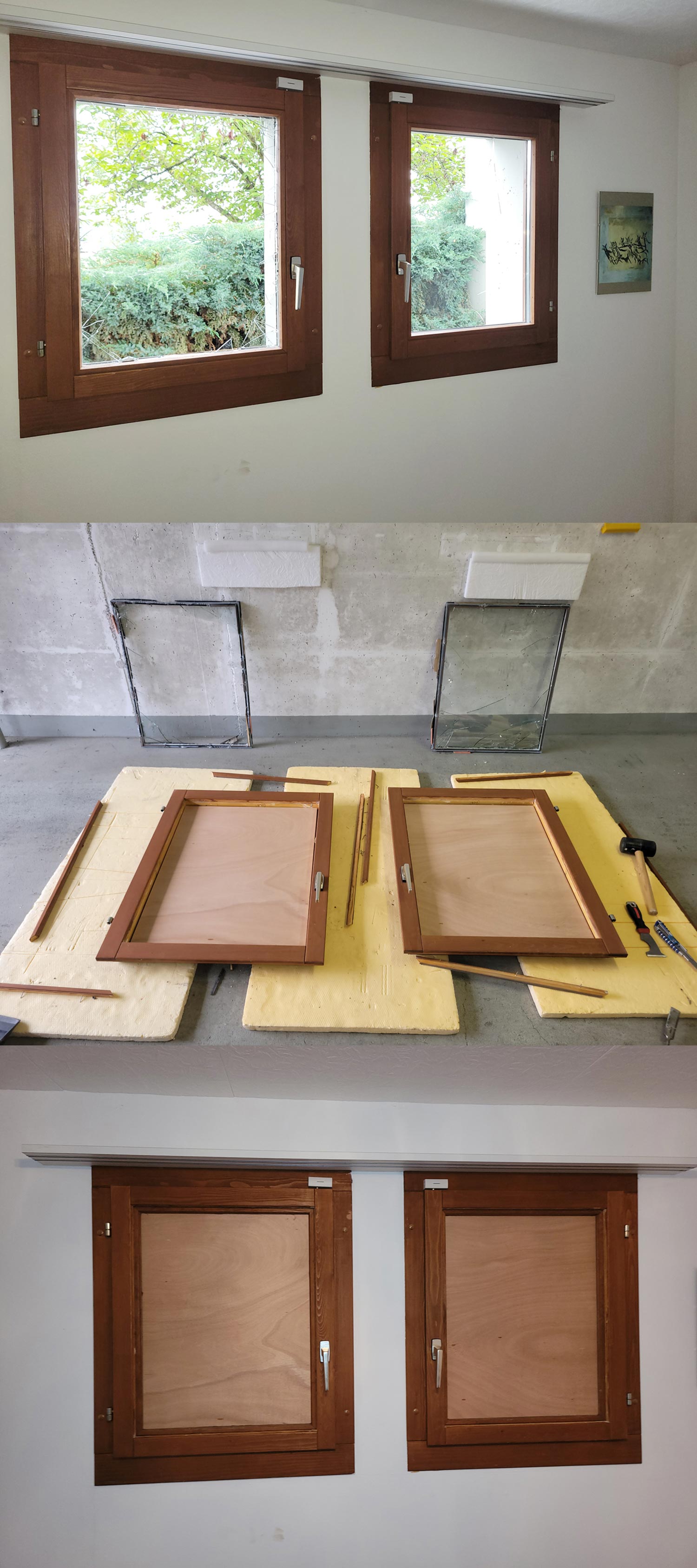 Wir sichern Fenster und Türen nach Einbruch oder Sachbeschädigung und sorgen für die provisorische Wiederherstellung. Wir reparieren – wo immer möglich – fachmännisch Fenster und Türen, die sich nicht mehr öffnen oder schliessen lassen oder anderweitig beschädigt wurden.